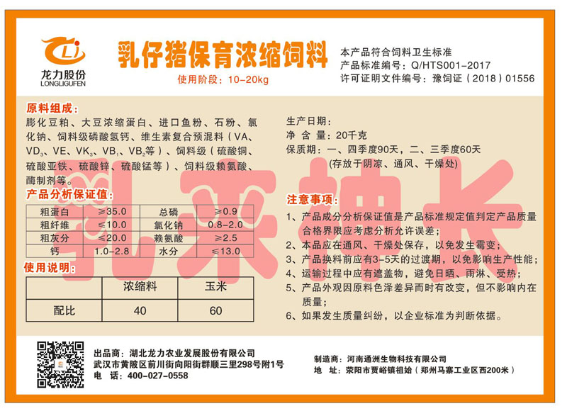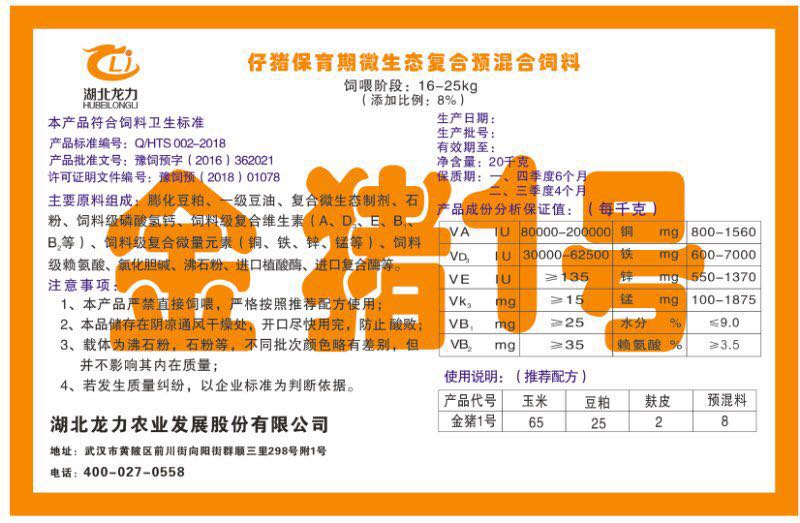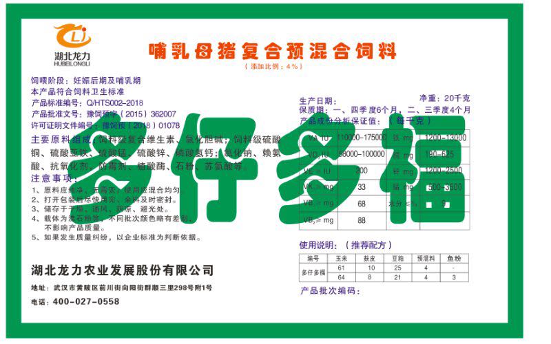 湖北龍力農(nóng)業(yè)發(fā)展股份有限公司坐落于武漢市黃陂區(qū)前川街向陽(yáng)街群順三里298號(hào)附1號(hào)。公司成立于2014年6月,公司自成立以來把“創(chuàng)全球最大養(yǎng)豬綜合服務(wù)”為企業(yè)愿景。致力于打造教保料品牌”作為公司發(fā)展的明確目標(biāo)。公司一直致力于豬營(yíng)養(yǎng)的研究和開發(fā),積極與國(guó)內(nèi)外高校和科研機(jī)構(gòu)合作,推廣養(yǎng)豬技術(shù)、動(dòng)物營(yíng)養(yǎng)新概念,向世界農(nóng)牧企業(yè)學(xué)習(xí)與合作。公司采用國(guó)內(nèi)先進(jìn)的生產(chǎn)工藝,選擇高精度電子配料秤,高均勻度、無(wú)殘留混合機(jī)等先進(jìn)設(shè)備....